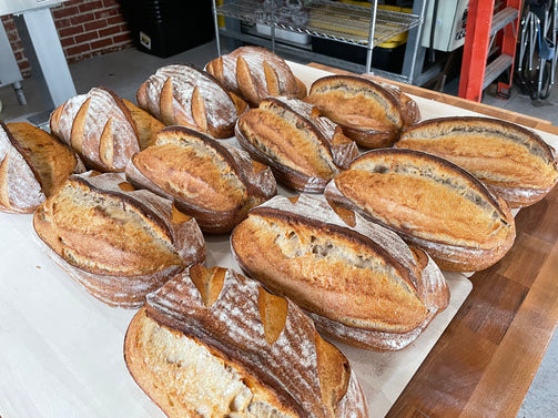 The Country White is our original loaf, and is based on a classic French sourdough or Pain au Levain. While it is a "white" bread, it contains about 25% whole wheat flour.