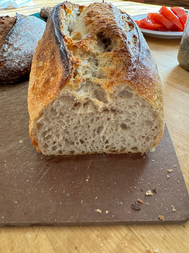 The Country White Pan Loaf is the perfect sandwich bread. This is our original loaf, and is based on a classic French sourdough or Pain au Levain. While it is a "white" bread, it contains about 25% whole wheat flour.
