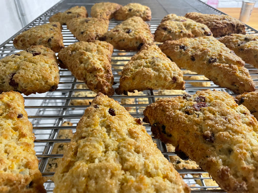 These buttermilk scones are amazing! Delicate, flaky, and buttery goodness! The currants and lemon zest are nicely balanced. You'll be wanting more!